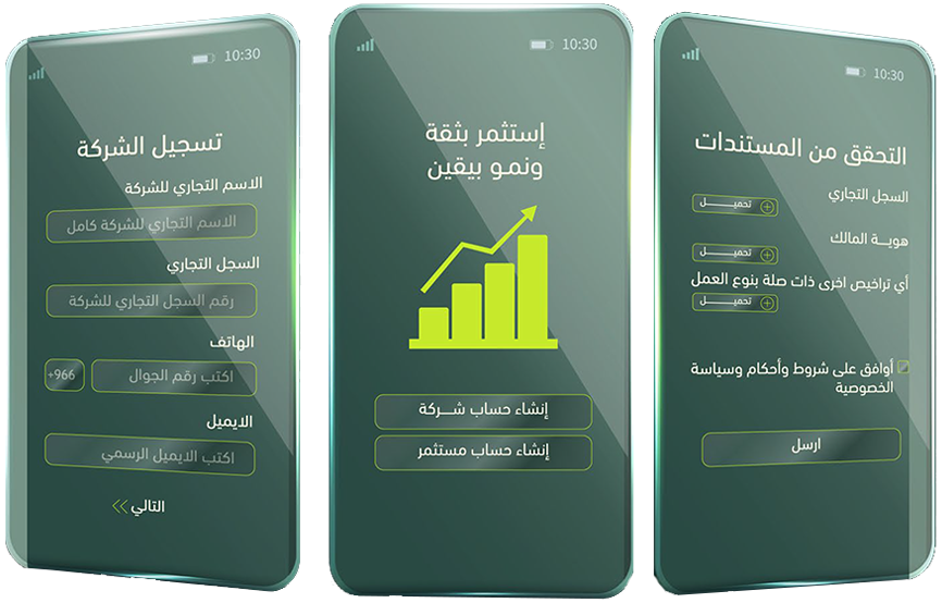 يسجل الشركاء على المنصة و البحث بالفرص المناسبة لاحتياجتهم و اضافة المبلغ المطلوب استثماره والعوائد المتوقعة. نقوم بتقييم تفضيلات المستثمرين المالية وقدرتهم على تحمل المخاطر، وذلك لتوجيههم نحو الفرص الأنسب.